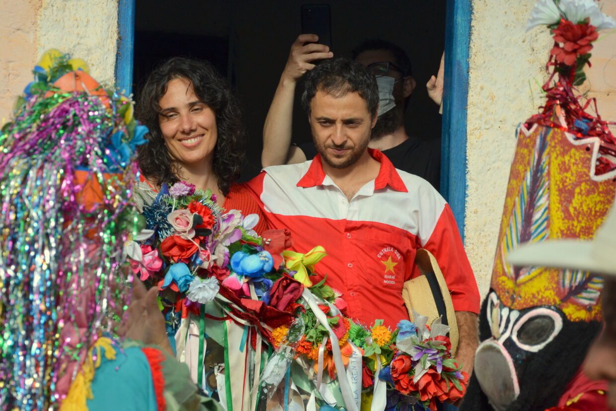 A comemoração se dá pela formação de um cortejo musical e cênico, onde se reúnem instrumentistas, com cavaquinho, viola, violão, rabeca, sanfona, pandeiro, caixa e reco reco. A bandeira, onde está representado o nascimento de menino deus, vai na frente do cortejo. Os bastiões, palhaços mascarados, animam o grupo e protegem a bandeira.